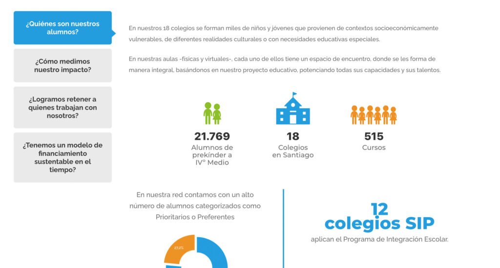 SIP Red de Colegios es una corporación de derecho privado, sin fines de lucro, con más de 165 años de tradición y experiencia en la entrega de educación de excelencia en sectores vulnerables. Cuenta con 17 colegios y casi 23.000 estudiantes.